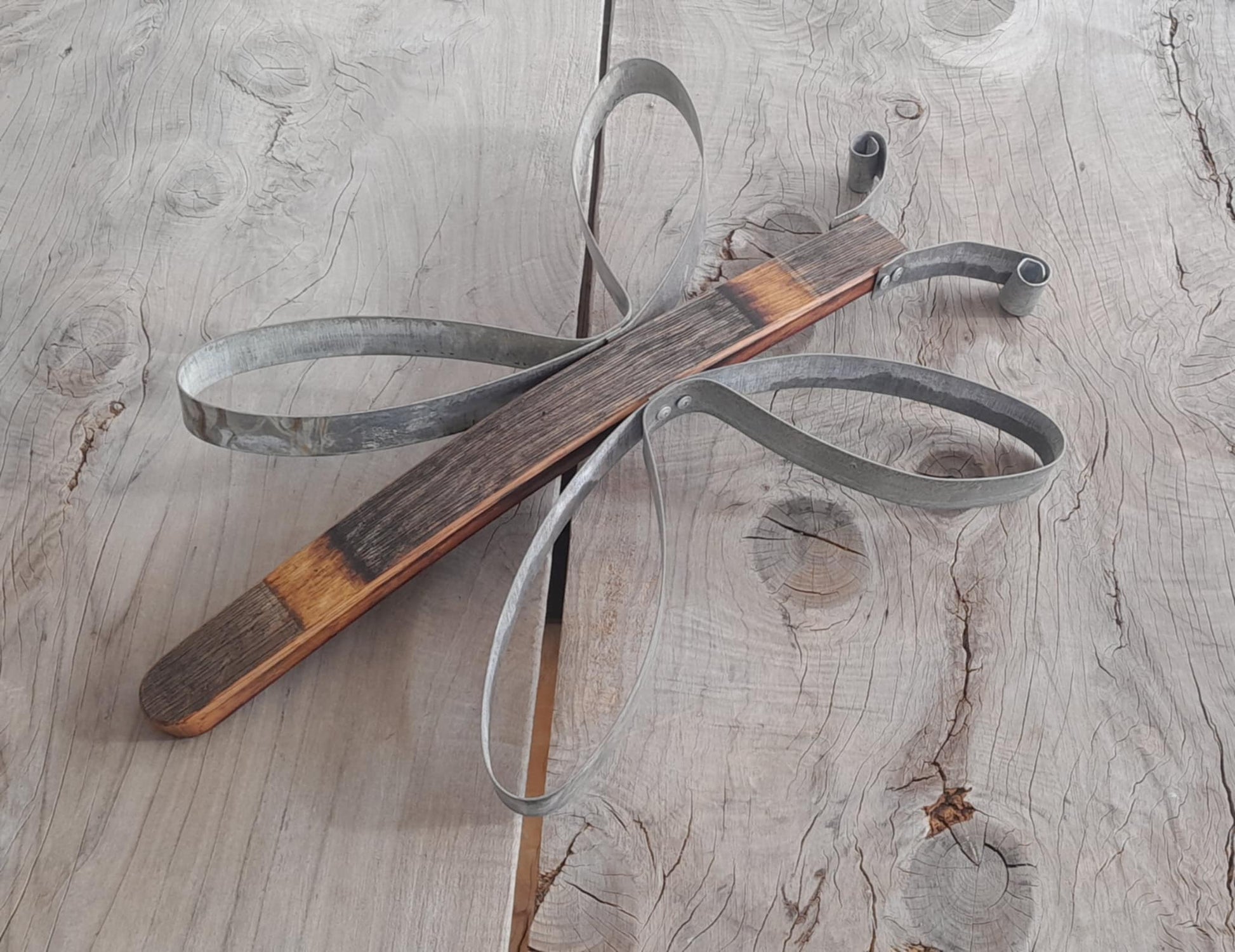 Made in our workshop made from a recycled wine barrel band and stave and oiled